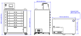 Maximum working temperature is 180ºC. Air is warmed by electrical heating elements. Air is pushed in the drawer horizontally in order to be uniform. Filtered air is keeping the fan and conduct clean, improving efficiency. The oven is equipped with exhaust fumes pipe and is ready for the application of a heat exchanger. Each drawer is independent and equipped with a timer. A LED light on the side and a sound alarm advise when the time is reached